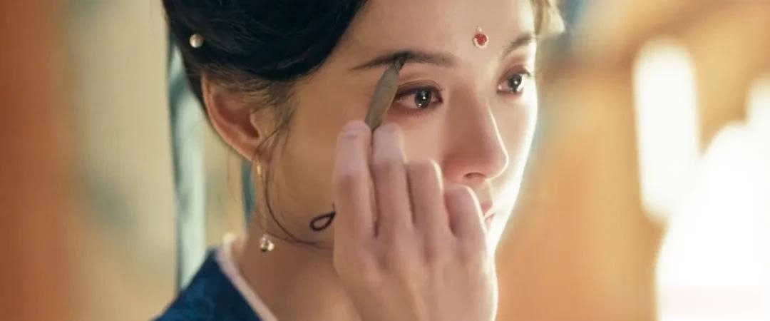 在镜子前,她最后一次梳妆打扮,动作轻柔,眉眼中却满是无法抑制的悲伤。尽管看上去是一副端庄大气的姿态,可这一刻的清冷感,还是扑面而来。