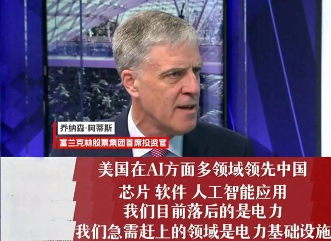 美国富兰克林股票集团首席投资官乔纳森·柯蒂斯在接受采访时表示:美国在AI方面多领域领先中国,其中包括了芯片、软件系统、人工智能生态应用等领域。